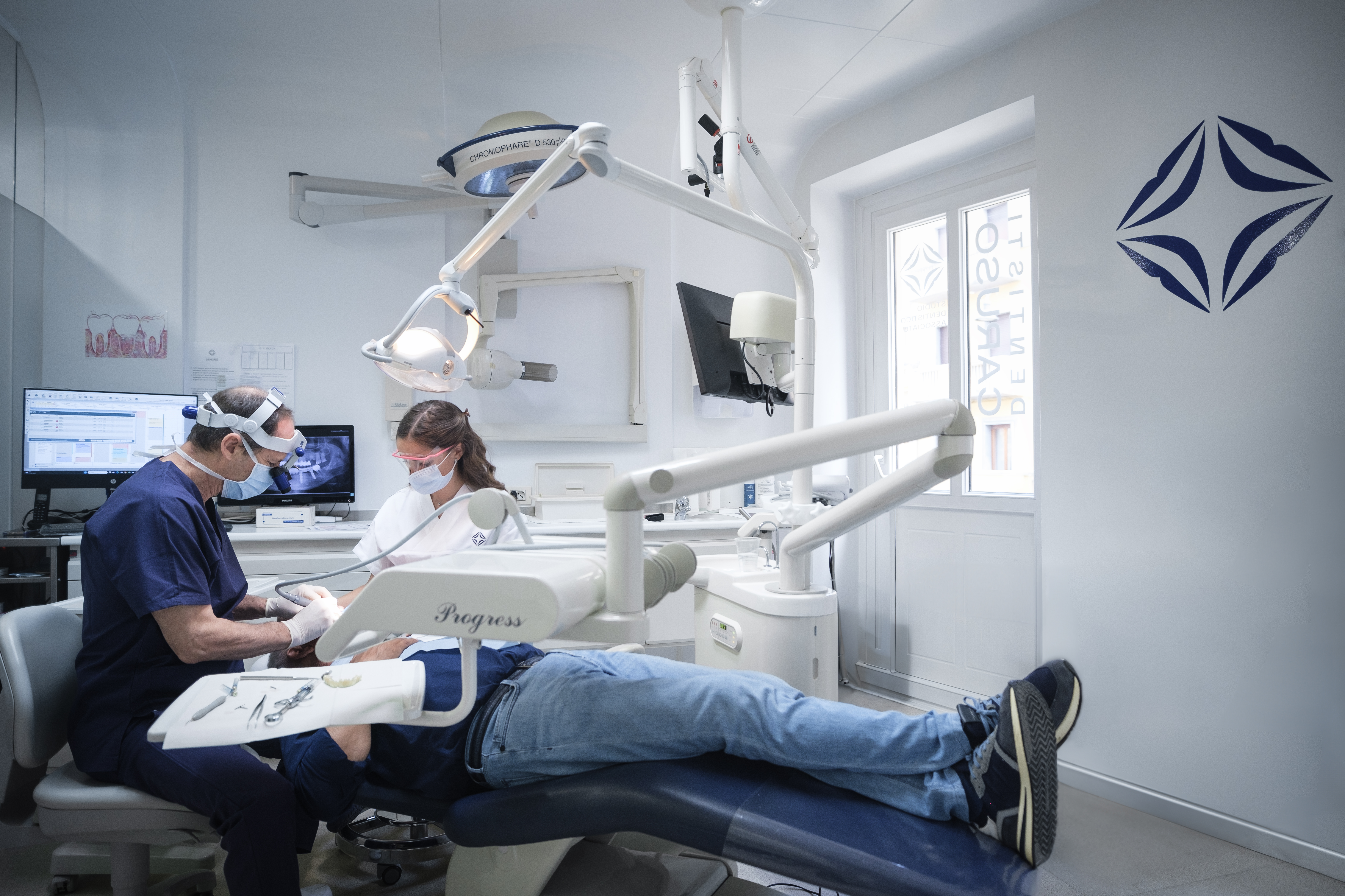 La tua visita avrà luogo nel nostro studio, equipaggiato con tutte le tecnologie di ultimissima generazione e strumentazioni all'avanguardia, per la tua salute dentale e benessere a 360°.